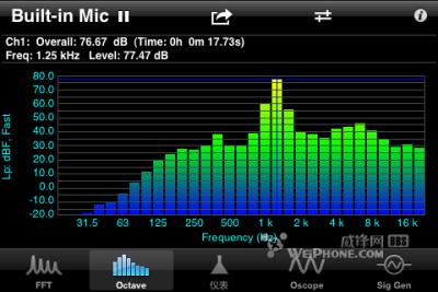 軟件通過機內MIC或外接MIC(帶MIC耳機)采集聲音,分析聲音的時域.頻域.波形.聲壓,如果外接專業(yè)MIC,分析的精度相對會提高,是音響工程師的好幫手。